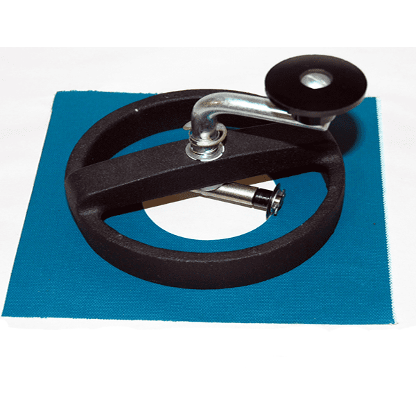 Plaats het mes in de positie op het doek waar uw boot vent wilt hebben, druk, en draai de hendel met de klok mee. Het duurt slechts een volledige omwenteling en u heeft het perfecte gat voor uw Boot Vent.